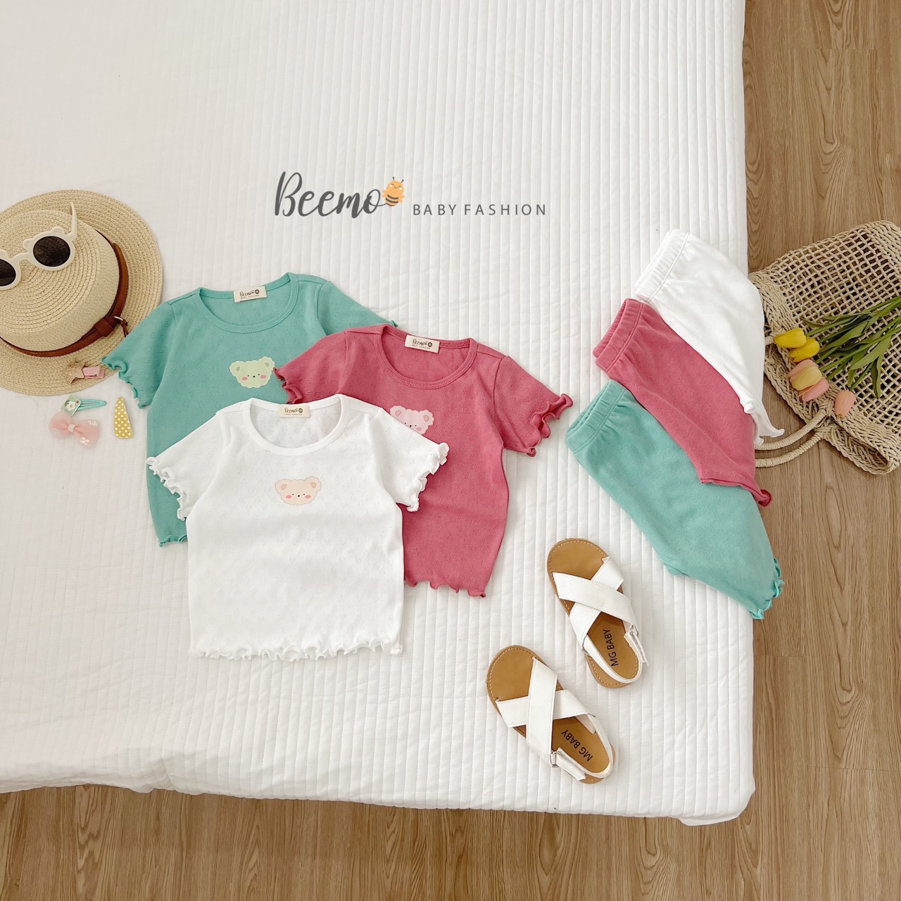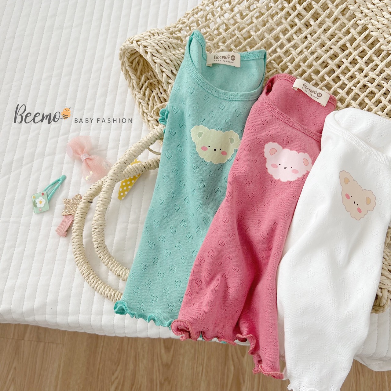 🍒 3 màu cực Hàn Quốc kết hợp với hình in gấu bé nào mặc cũng cưng xỉu