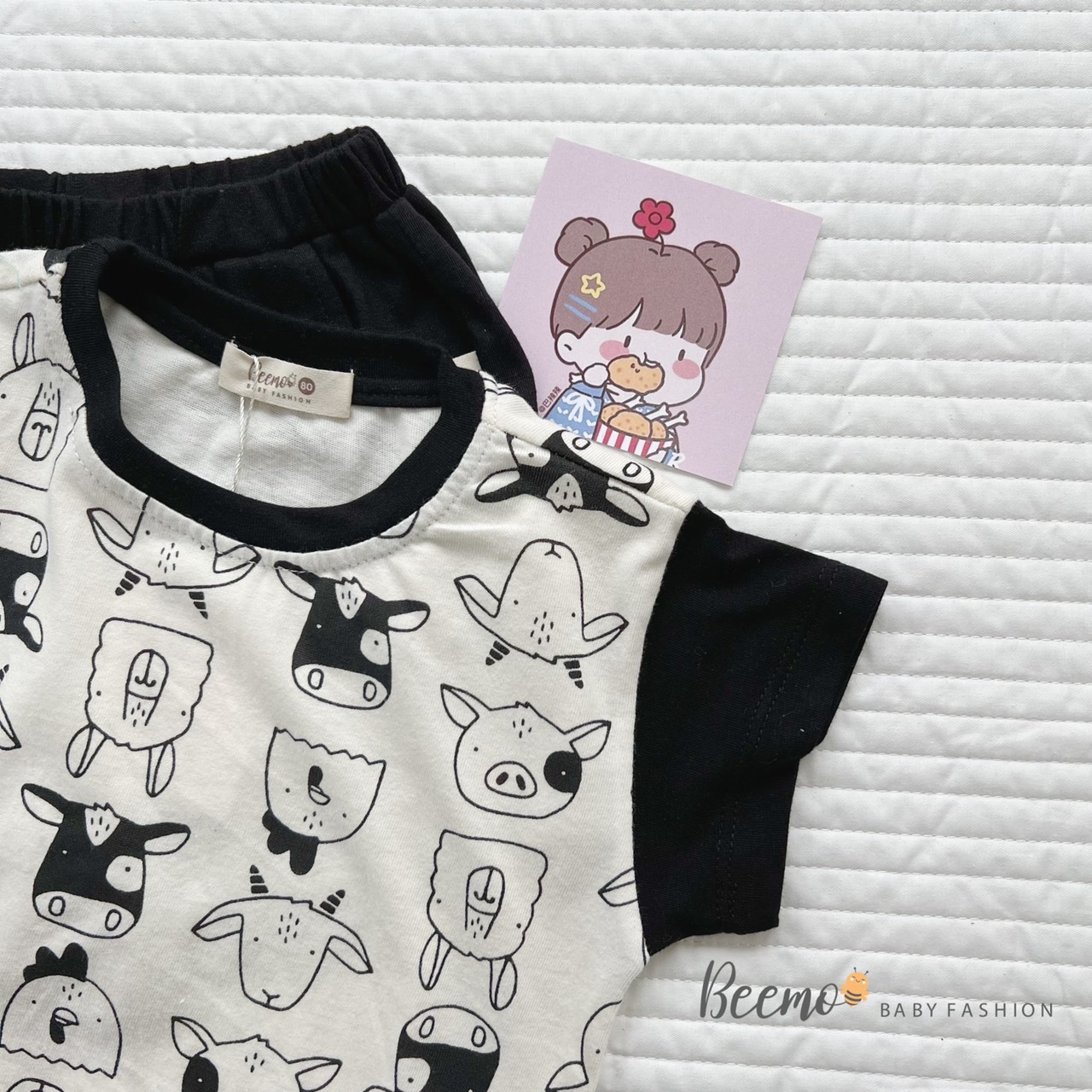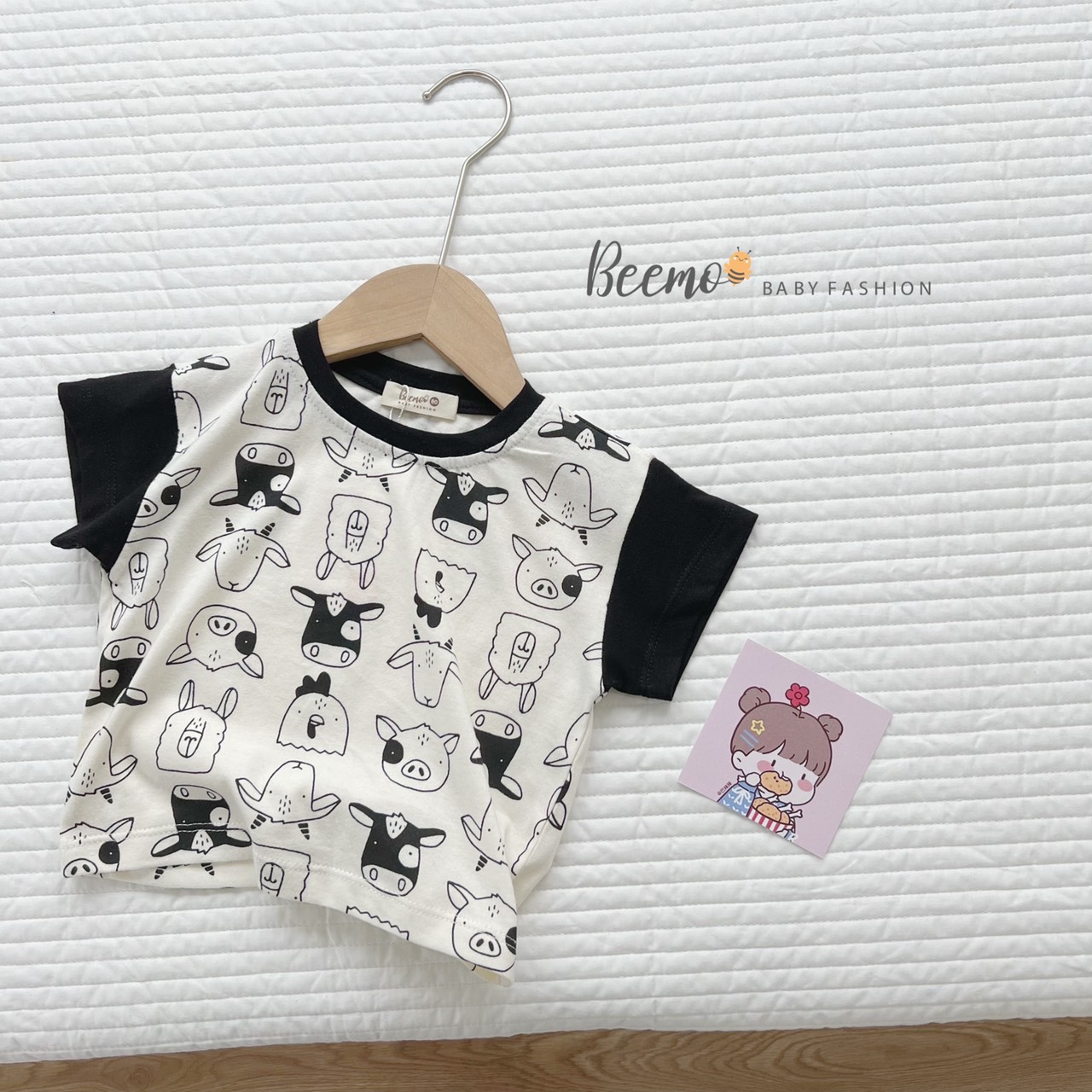 ☘ Hình in cưng xỉu với những bạn thú cưng nổi bật trên nền áo trắng đảm bảo bé nào cũng mê