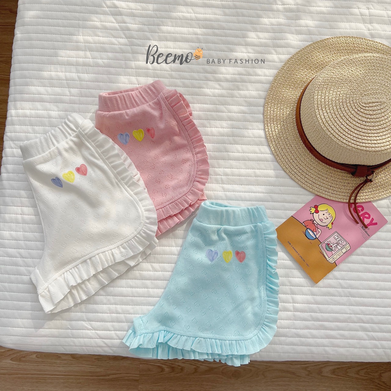 💖 Quần có 3 màu: trắng - hồng - xanh mint cùng họa tiết tim nổi bật