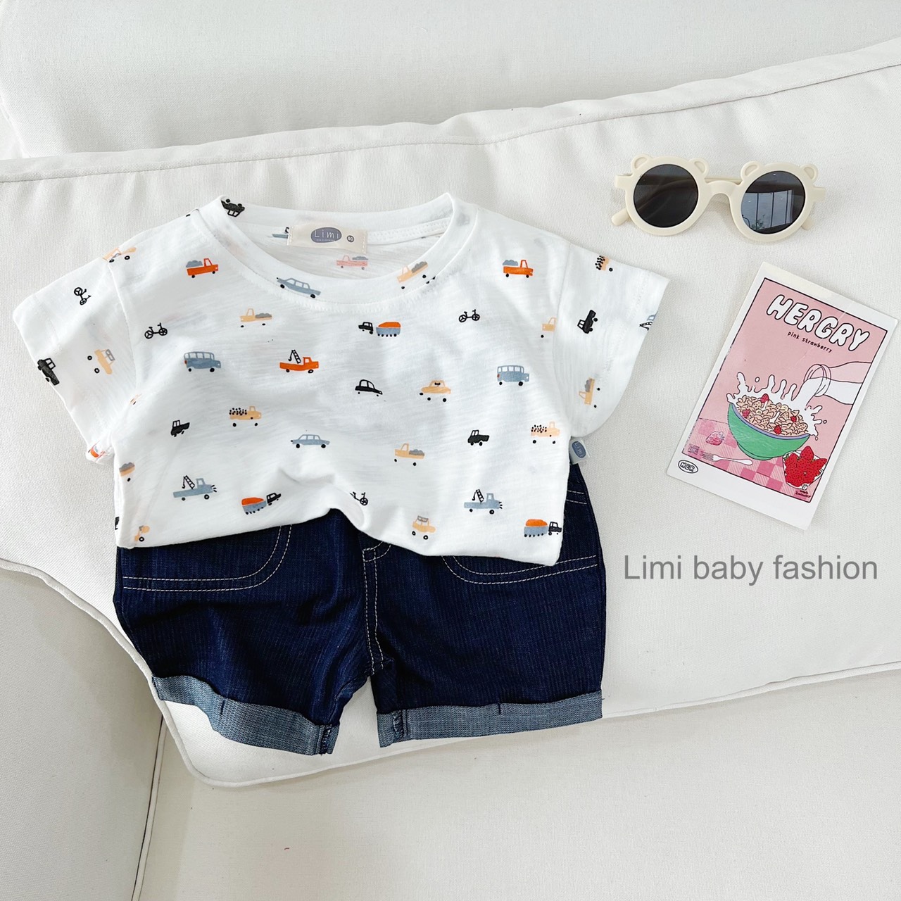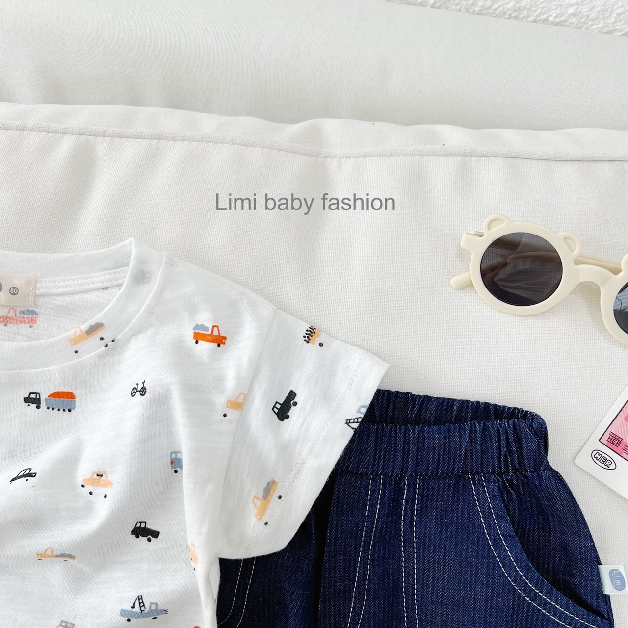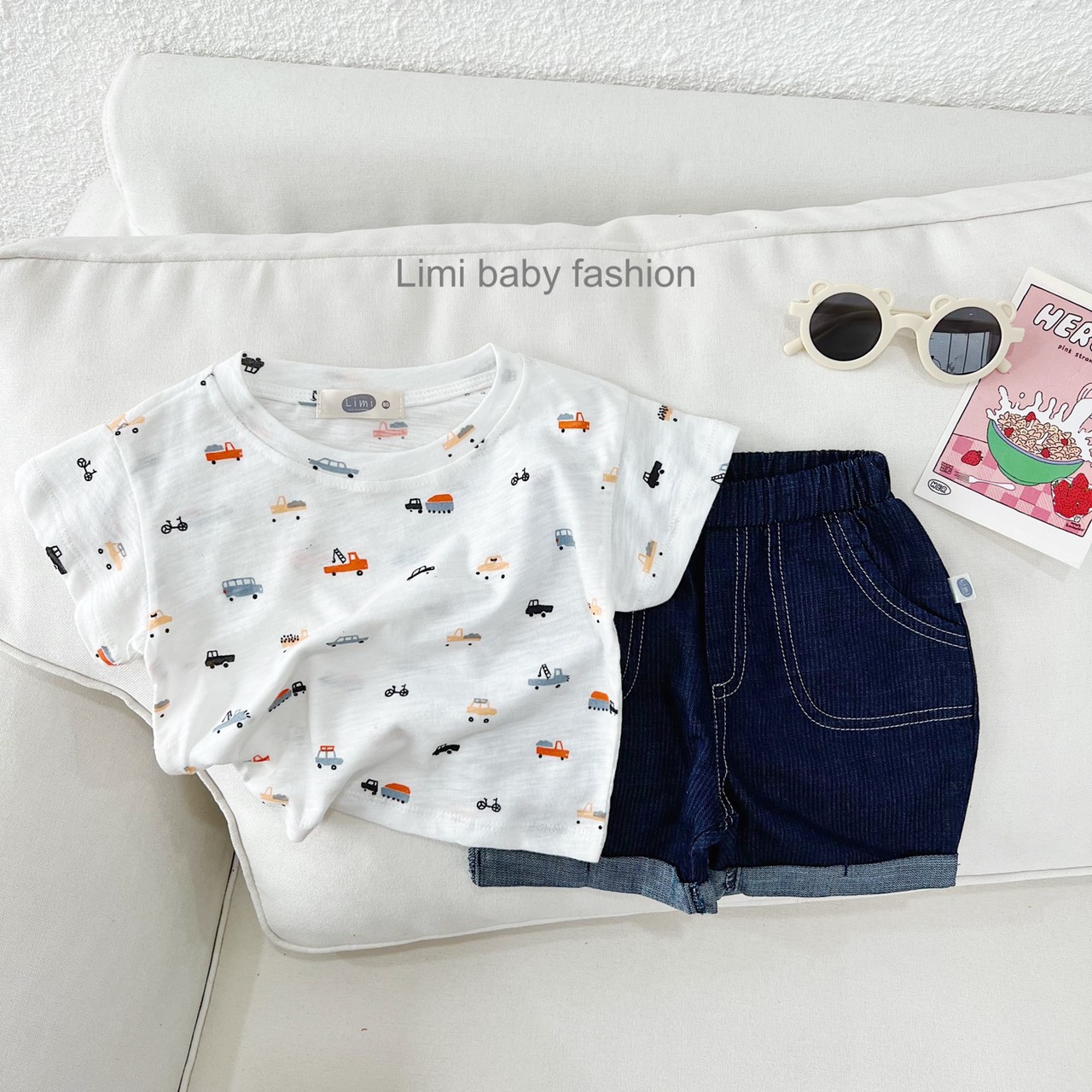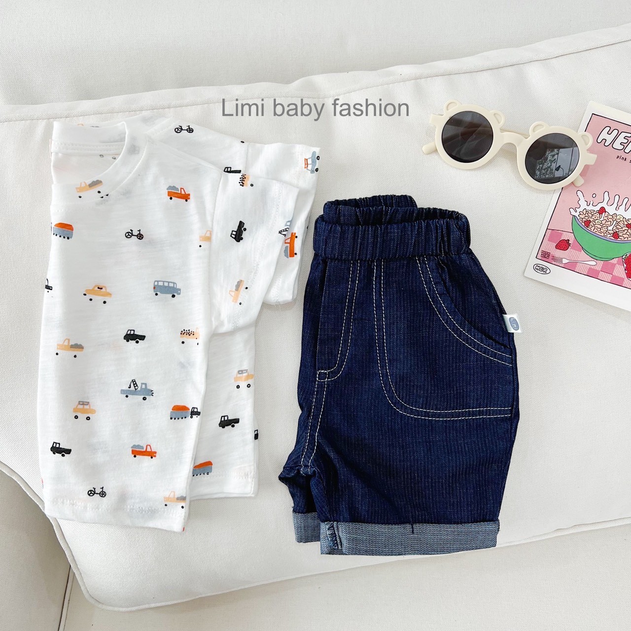 🏎 Set đồ siêu mát mặc hè cho bé trai với áo chất cotton mỏng, nhẹ, quần bò chỉ nổi khỏe khoắn