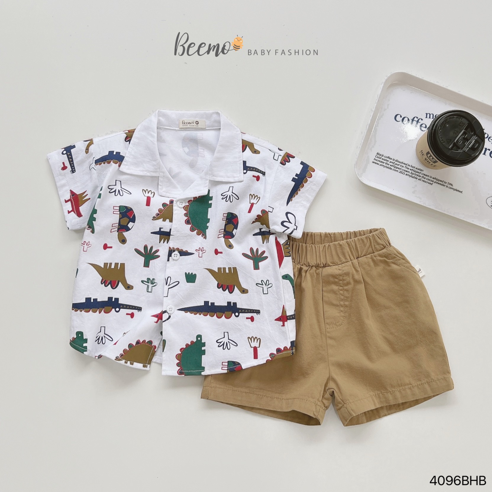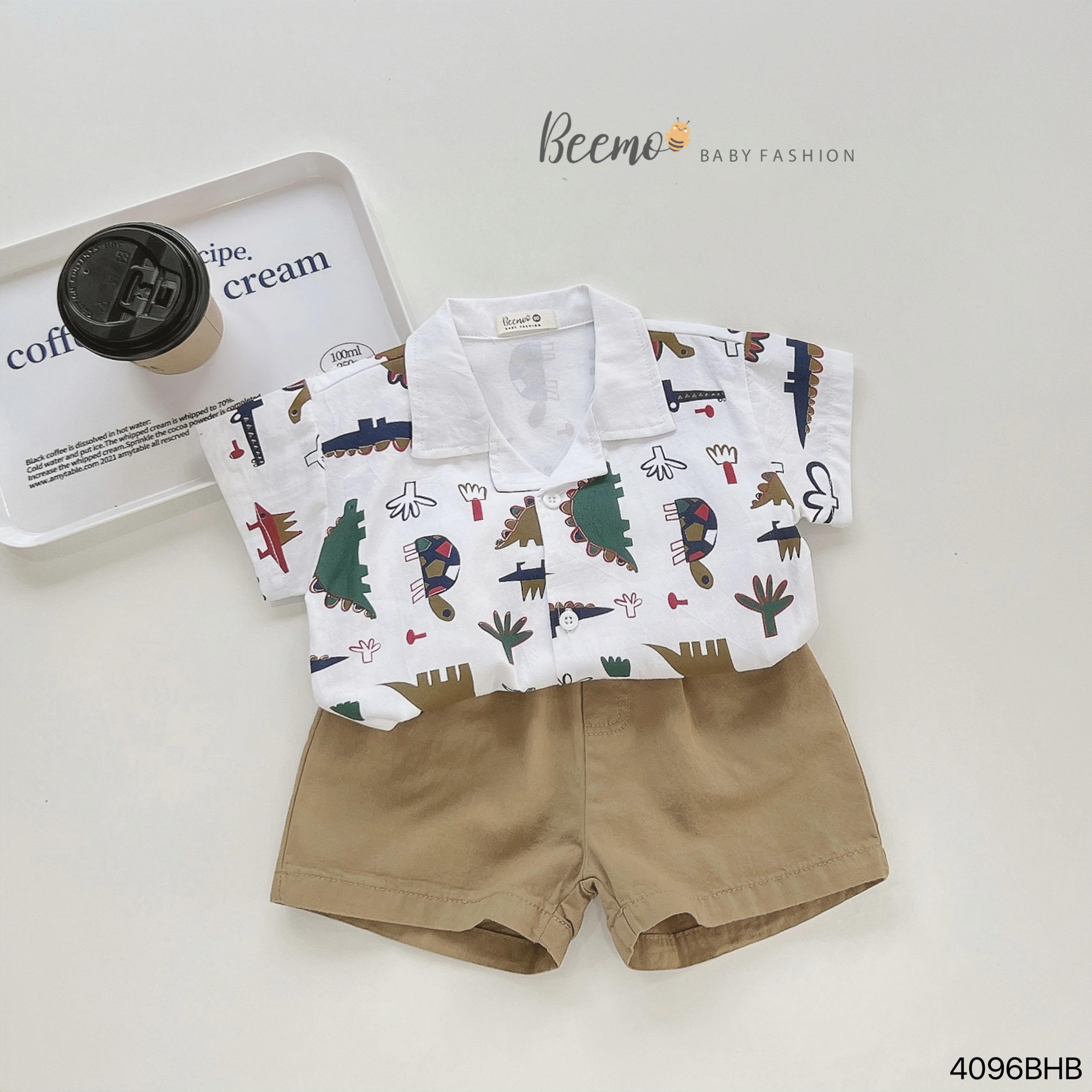 🧀 Thiết kế áo sơ mi cổ ve hình in sắc nét, trendy, quần shorts kaki lưng thun co giãn